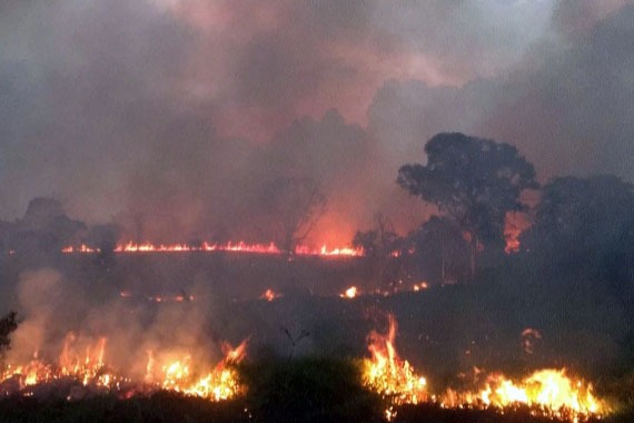 Com a ação, os bombeiros conseguiram desviar o fogo da rota das casas, dos fios da rede elétrica.