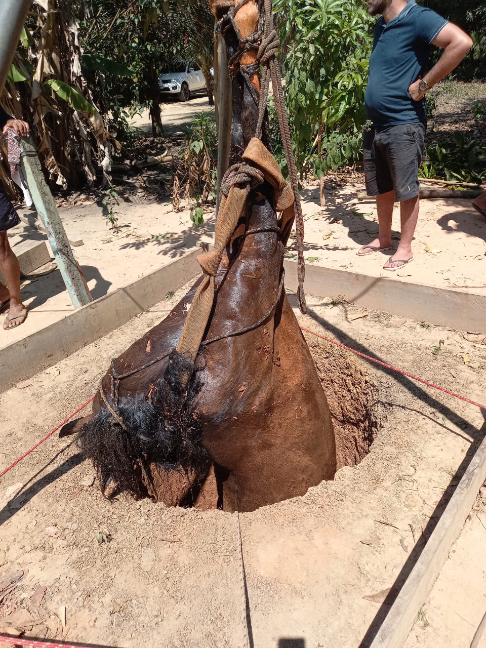 O Corpo de Bombeiro de Cruzeiro do Sul (AC) realizou o resgate de uma égua que caiu dentro de um poço de aproximadamente 6 metros de profundidade. De acordo com a ocorrência, a equipe foi acionada para realizar o resgate do animal no Ramal 2.