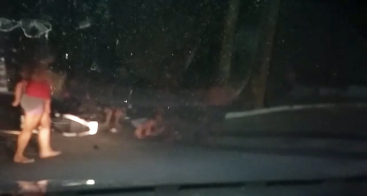 Em um vídeo enviado à nossa equipe, é possível ver uma mulher gritando com dor e duas motos no chão. No vídeo, é possível ouvir a mulher reclamar de dor no pé, e chorar muito.