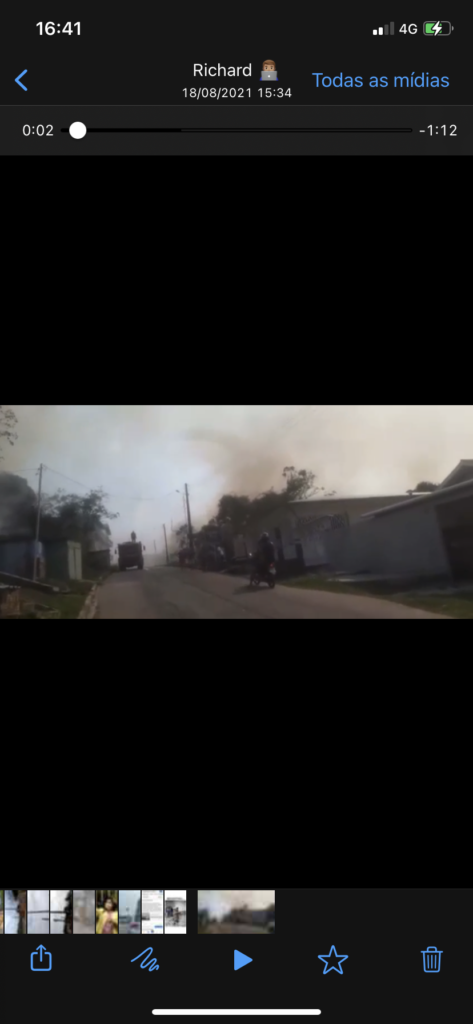 O fogo estava próximo à casas, e por pouco não alcançou as residências. Moradores relataram que o fogo gerou uma fumaça densa e muita fuligem.