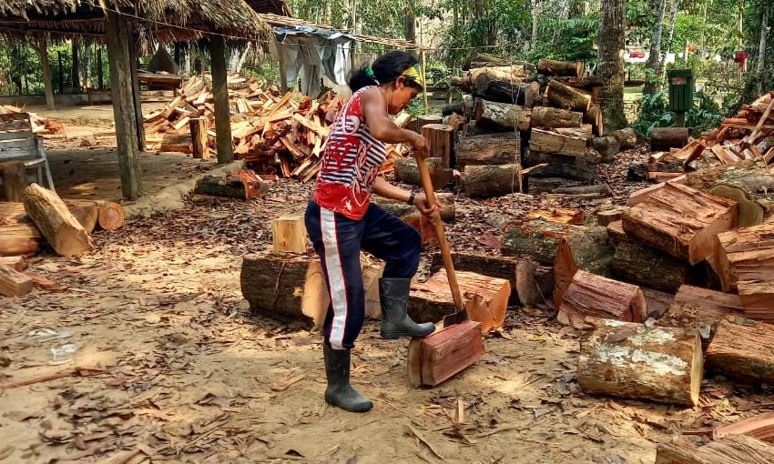 A pilha de toras de madeira cortadas a machadadas em apenas dois dias, em uma propriedade no Rio Crôa, em Cruzeiro do Sul, não deixa dúvidas de que Tosinha é incansável, mesmo o instrumento de trabalho sendo quase do mesmo tamanho dela. “Eu faço isso desde menina. Acostumei, por isso não acho difícil, nem pesado”, conta.