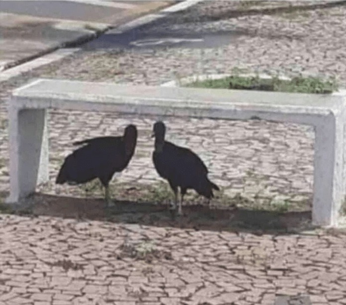 Com a onda de calor, os animais também são afetados. O médico Thor Dantas compartilhou em suas redes sociais a imagem de dois urubus se protegendo do calor escaldante embaixo de um banco, na Praça Plácido de Castro – no centro da cidade.