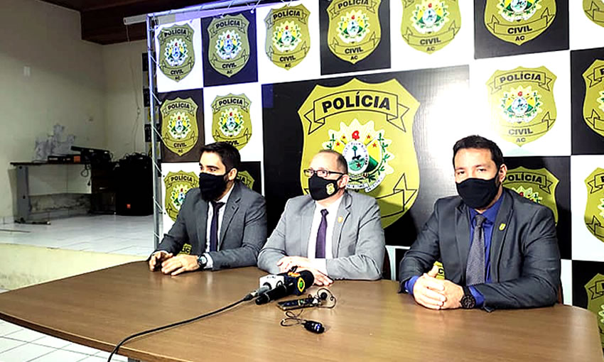 Em entrevista coletiva os delegados da Polícia Civil do Acre, Pedro Rezende, Alcino Júnior e o delegado-geral da PC do Acre, Josemar Portes, falaram da Operação Candeeiro, que foi desencadeada nos estados do Acre, Rio de Janeiro e Espírito Santo na manhã desta quarta-feira (04).