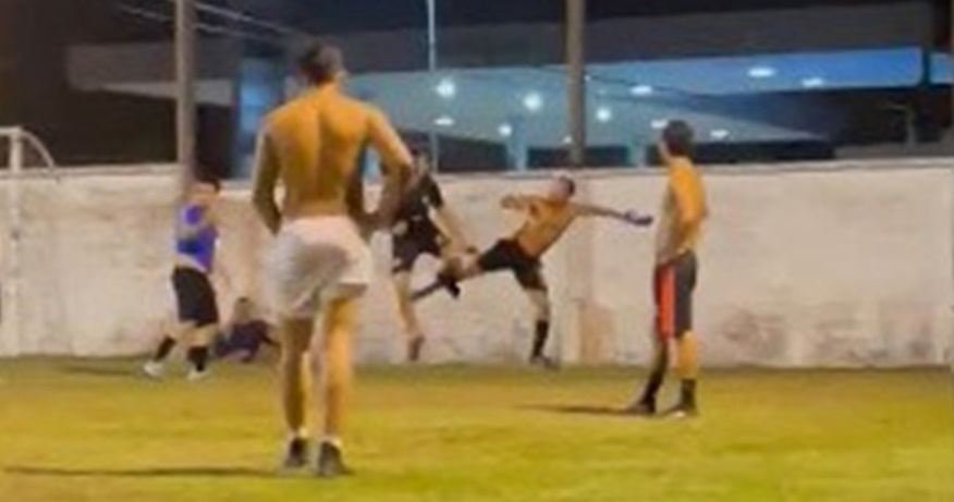 O que seria uma simples partida de futebol, terminou em socos e pontapés no campo da Associação Atlética Banco do Brasil – AABB, em Cruzeiro do Sul (AC) na noite desta segunda-feira (16). Um vídeo, gravado por um cinegrafista amador, viralizou nas redes sociais; nele é possível observar os jogadores de futebol entrando em atrito e acabam trocando socos e chutes. Assista:
