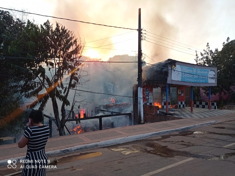 Uma pizzaria e uma casa abandonada foram destruídas pelo fogo na manhã deste sábado (7) na Avenida Santos Dumont, em Epitaciolândia, no interior do Acre. Equipes do 5º Batalhão do Corpo de Bombeiros do Acre foram acionadas para combater as chamas e acreditam que o fogo iniciou na casa abandonada que ficava ao lado do estabelecimento.