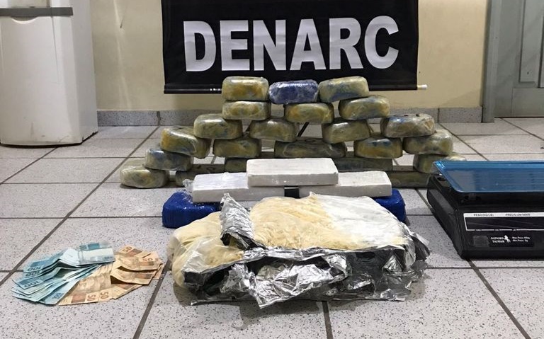 Em ação continua, os investigadores da DENARC se dirijam até o endereço de onde o investigado havia saído para o aeroporto e foi possível lograr êxito na apreensão de quase 30 quilos de cocaína e prender uma mulher R.S.O. de 26 Anos.