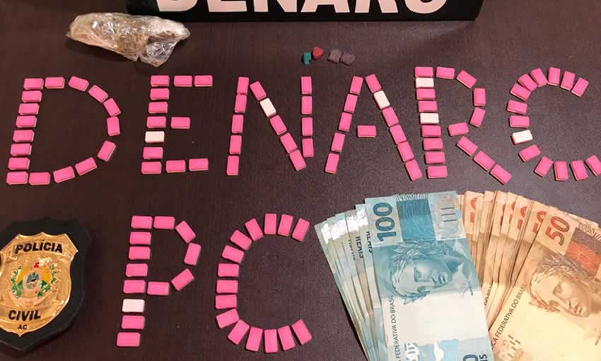 Após trabalho de investigação realizado pela Policia Civil por meio da Delegacia de Repressão ao Narcotráfico (Denarc) realizou prisão em flagrante de L. G. de A. 26 anos, em posse de 114 balas de ecstasy de formato quadrado na cor rosa.