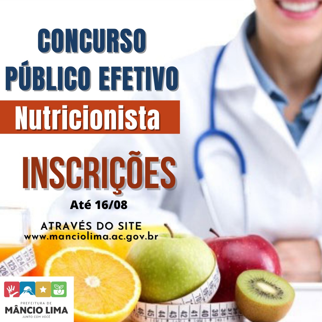 A prefeitura municipal de Mâncio Lima, está com inscrições abertas para o concurso efetivo para o cargo de nutricionista. As inscrições estão abertas desde o dia 30 de julho, e se estendem até o dia 16 de agosto.