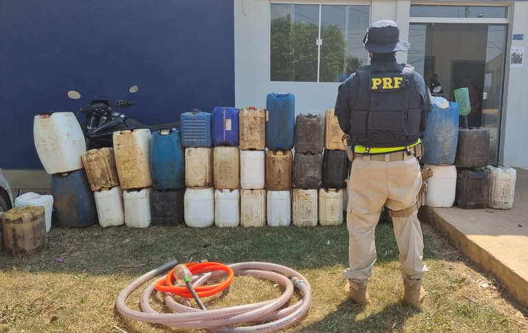 A Polícia Rodoviária Federal apreendeu neste domingo (15) cerca de 280 litros de combustível armazenados e vendidos ilegalmente em um ponto comercial da BR-364, em Senador Guiomard.