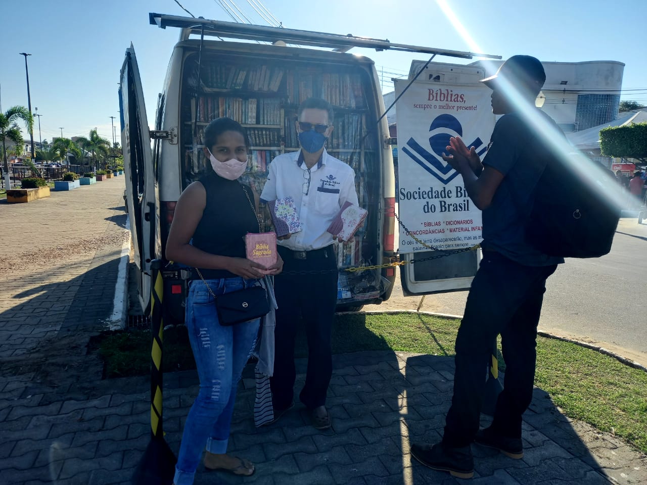 O vendedor de Bíblias, Jairo Vieira, trouxe uma super novidade aos moradores de Cruzeiro do Sul: uma van, da Sociedade Bíblica do Brasil (SBB), com várias Bíblias, materiais acadêmicos para estudantes de Teologia, livros infantis, dentre inúmeras outras novidades.