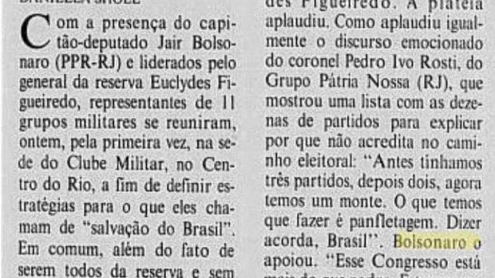 Em 1993, quando exercia seu primeiro mandato como deputado federal, Bolsonaro questionava o resultado das urnas e falava na necessidade de implementar um sistema eletrônico nas eleições. Em 21 de agosto daquele ano, o então parlamentar defendeu a informatização durante um encontro de militares da reserva, no Rio de Janeiro.