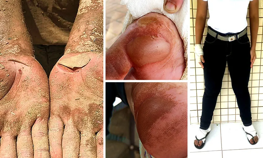 Em imagens enviadas à reportagem é possível identificar pés calejados e cheios de bolhas. Mãos de alunos parcialmente sem pele e carne exposta devido à exaustão dos treinamentos.