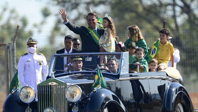 O ex-piloto Nelson Piquet, triicampeão mundial de Fórmula 1, deu um passo à frente na sua conversão ao bolsonarismo: atuou hoje como motorista do Rolls-Royce que levou o presidente Jair Bolsonaro e a primeira-dama Michelle Bolsonaro para a cerimônia de hasteamento da bandeira no Dia da Independência.