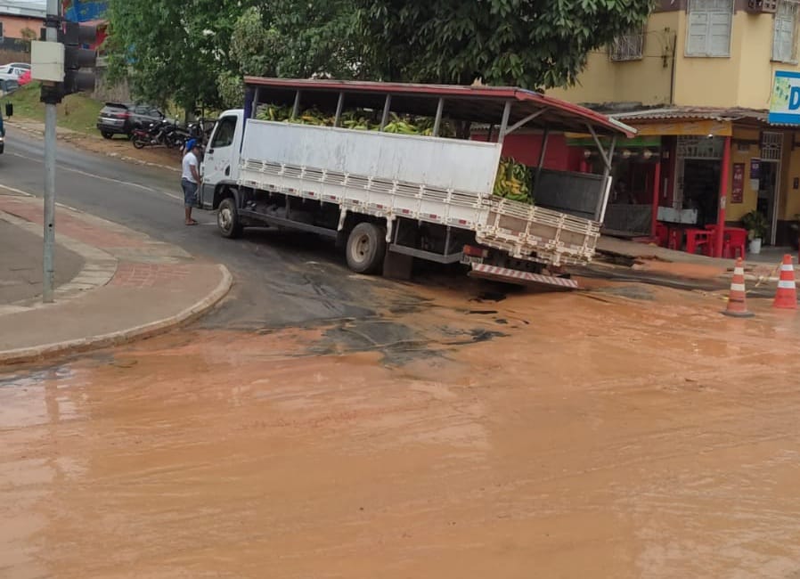 O motorista conta que vinha da beira do rio para entregar bananas para alguns comerciantes e acabou caindo no buraco, que imediatamente começou a jorrar. Ele conseguiu sair do local depois de receber a ajuda de outros motoristas.