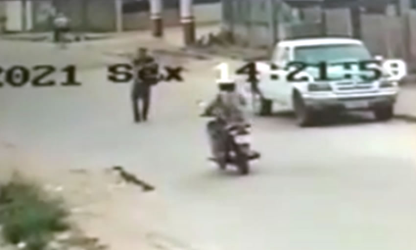 Em vídeo, é possível ver o criminoso andando pela calçada e se escondendo atrás de uma caminhonete, aguardando a vítima. No momento em que uma mulher trafegava numa motocicleta modelo Biz, cor preta, placa QLY-4631, vai se aproximando do carro estacionado.