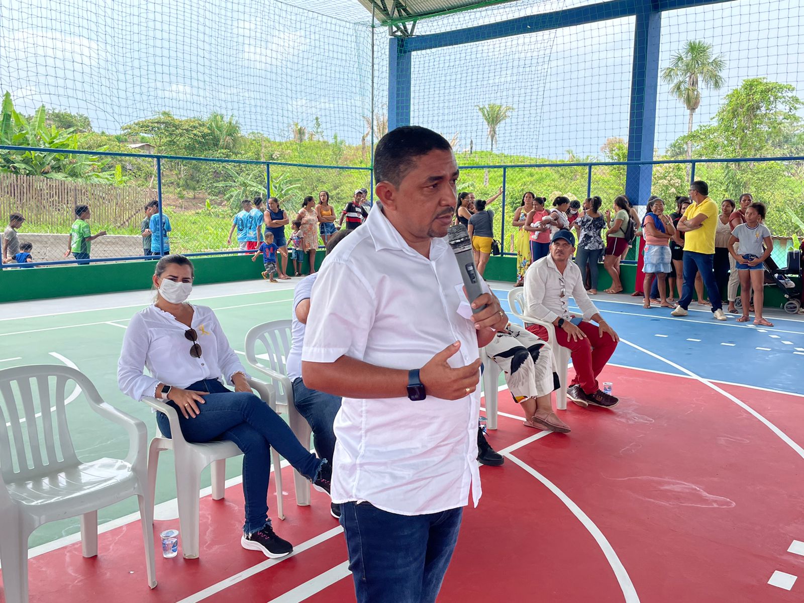 Um amistoso com premiação e lanche para adolescentes e adultos vacinados da zona urbana, e das comunidades Besouro, 2º distrito e Vitória foi sediado no novo espaço. O evento contou com também com a participação da ex vice-Prefeita Profª Nagilda, secretários municipais, pelo Presidente do Poder Legislativo, Robson Rodrigues que representou a Câmara e testemunhou a indicação da vereadora Cleide Silva para que a quadra homenageasse a pequena Isabele Maria, vítima de um acidente de trânsito enquanto brincava na rua com colegas.