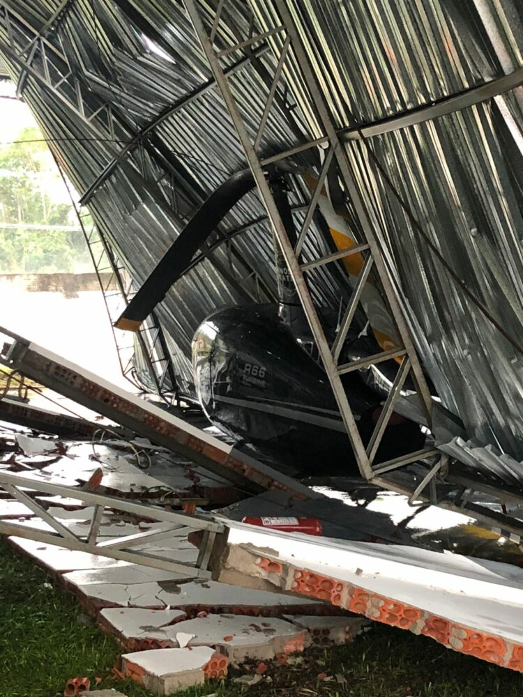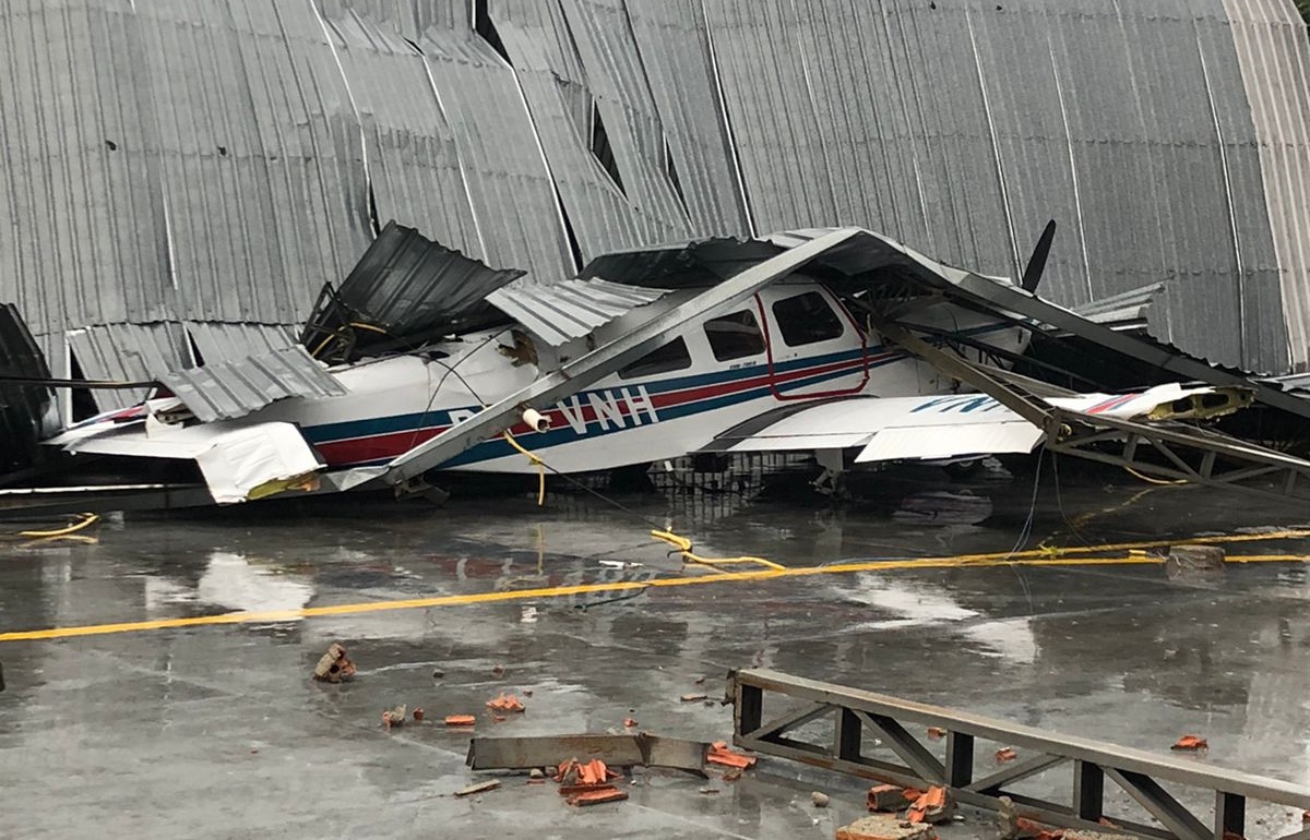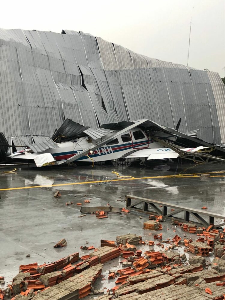 Com o temporal, algumas partes do aeroporto foram destruídas, como as coberturas de alguns prédios (hangar) onde ficam as aeronaves. Com isso, uma aeronave foi atingida pela cobertura que chegou a cair, bem como um helicóptero que sofreu sérios danos em sua estrutura.