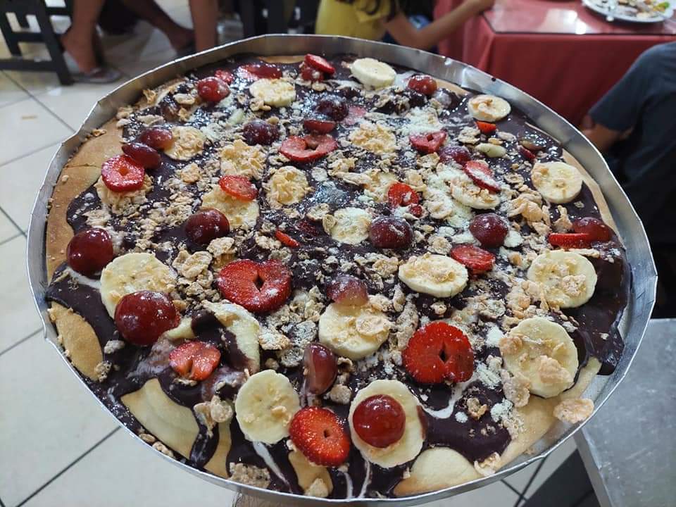 Na pizzaria, o sabor açaí cremoso pode ser consumido com diversos acompanhamentos, como sucrilhos, frutas, leite condensado e também leite em pó.