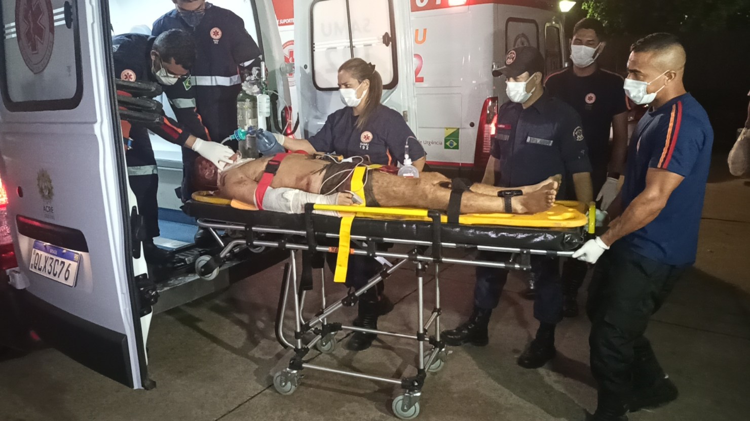 A ambulância do suporte avançado do Serviço de Atendimento Móvel de Urgência (SAMU) foi acionada, os paramédicos prestaram os primeiros atendimentos e encaminharam Laudimiro ao Pronto-Socorro de Rio Branco, intubado, em estado de saúde gravíssimo.