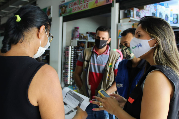 Durante a abordagem, os técnicos do Procon/AC dialogaram com os consumidores e lojistas sobre algumas regras do CDC, como o direito do arrependimento, formas de pagamento, emissão de notas fiscais e propaganda enganosa, entre outras.
