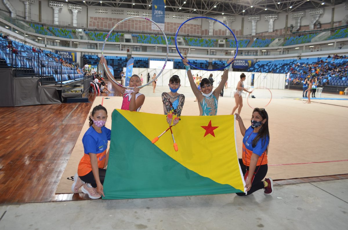 O Acre está representado na edição 2021 dos Jogos Escolares Brasileiros (JEBs), realizada na cidade do Rio de Janeiro. Nesta quinta-feira, 28, aconteceu a estreia da equipe de ginástica rítmica na competição que conta com três atletas. É a primeira vez que o Estado participa nessa modalidade.