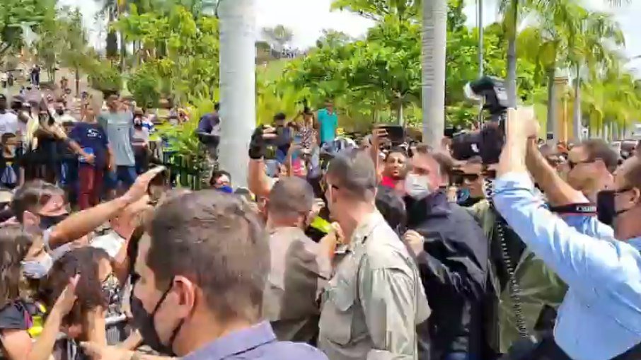 Em vídeo publicado nas redes sociais, Bolsonaro é visto chegando à igreja de máscara. Vários apoiadores do presidente se aproximaram dele, causando aglomeração. Assista: