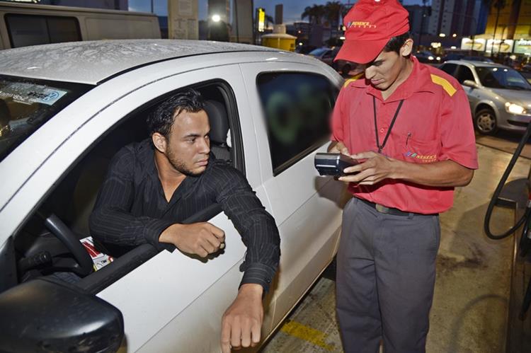 Brasília - Protesto contra o aumento da gasolina Vamos Dar o Troco ocorre no Distrito Federal. Na foto, Devid Alves da Silva, consumidor abastece R$ 0,50 e paga no cartão de crédito (Valter Campanato/Agência Brasil)