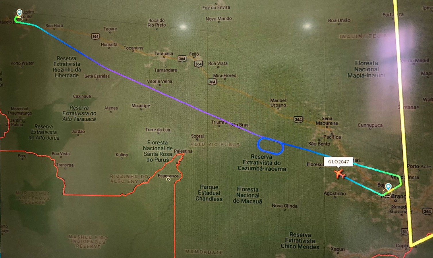 Avião da GOL sobrevoa Rio Branco por cerca de 1h e para não ficar sem combustível retorna para CZS