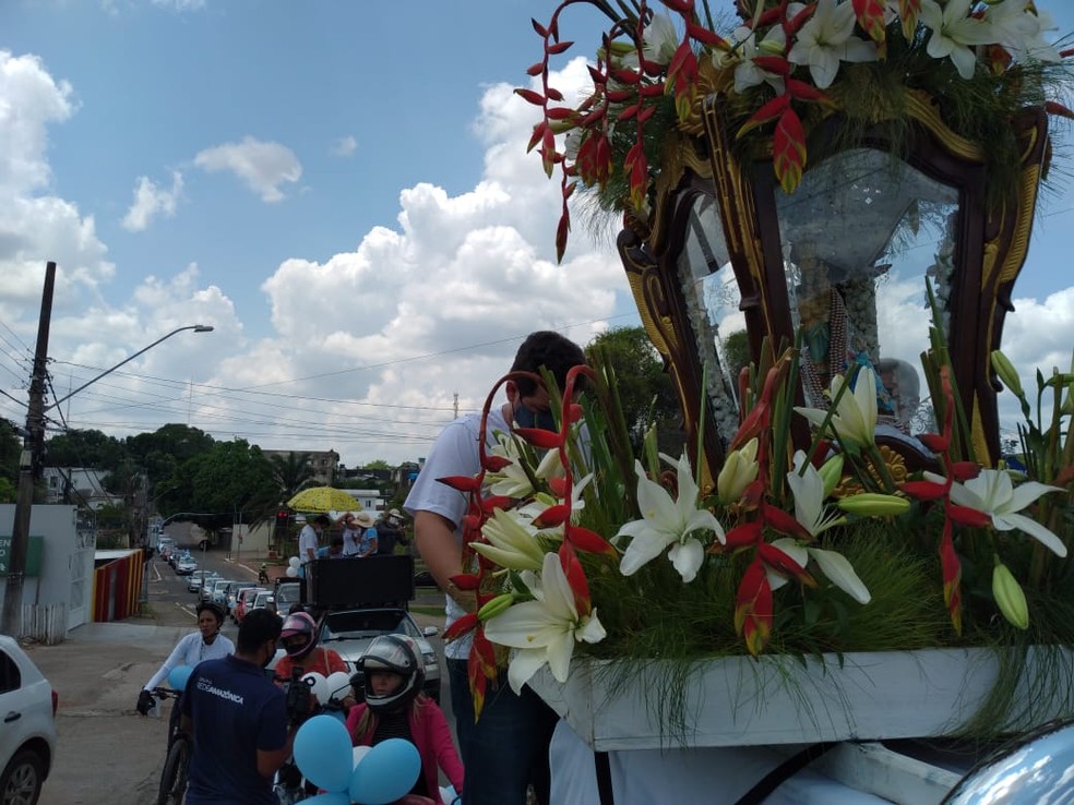 A programação começou às 8h, com a celebração da missa solene na Catedral Nossa Senhora de Nazaré, na capital. Em seguida, os fiéis seguiram em carreata por cerca de seis quilômetros.