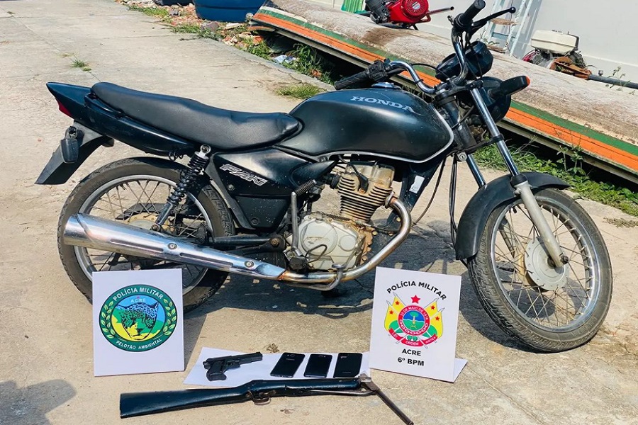 Com os presos, foi recuperada a motocicleta, além de três celulares e R$ 100,00 do restaurante. Também foi apreendida uma arma de fogo tipo rifle Cal. 22 e um simulacro de pistola. Diante dos fatos, a dupla de assaltantes foi encaminhada para a Delegacia Geral de Cruzeiro do Sul onde foram apresentados para o delegado plantonista.