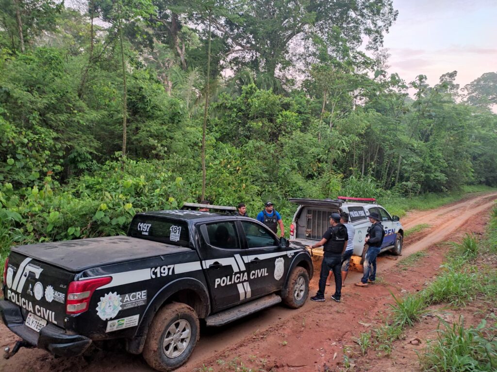 Nas primeiras horas desta quinta-feira, 07, as equipes de agentes de Policia Civil com apoio de agentes de Policia Penal do Instituto de Administração Penitenciária (IAPEN) se deslocaram ate o km 60 da BR-364, sentido Sena Madureira Cruzeiro do Sul, e entraram no Ramal do 60 conseguindo localizar propriedade rural em que o foragido encontrava-se homiziado. O investigado violou o equipamento de monitoramento eletrônico e estava homiziado em uma área rural.