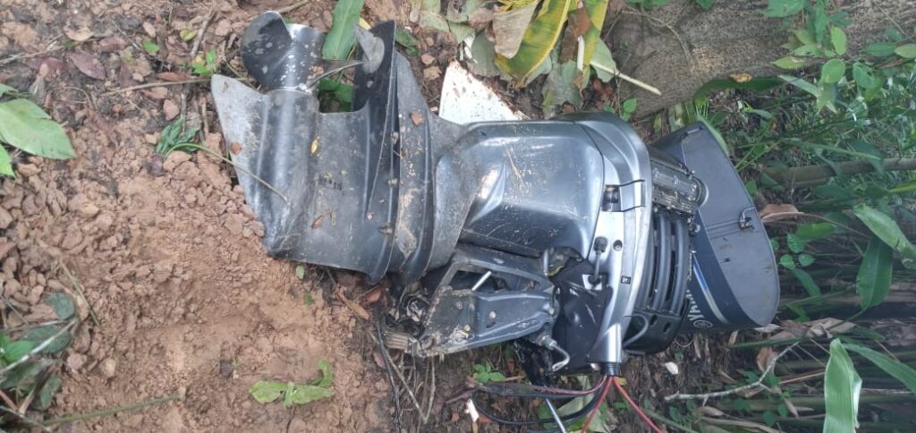 Após denúncia anônima policiais militares do 6° BPM recuperam motor de voadeira roubado no último dia 28 de setembro, no rio Môa, em Cruzeiro do Sul (AC). De acordo com o boletim de ocorrência, os militares foram ao local informado e encontraram o motor jogado dentro da área de mata.