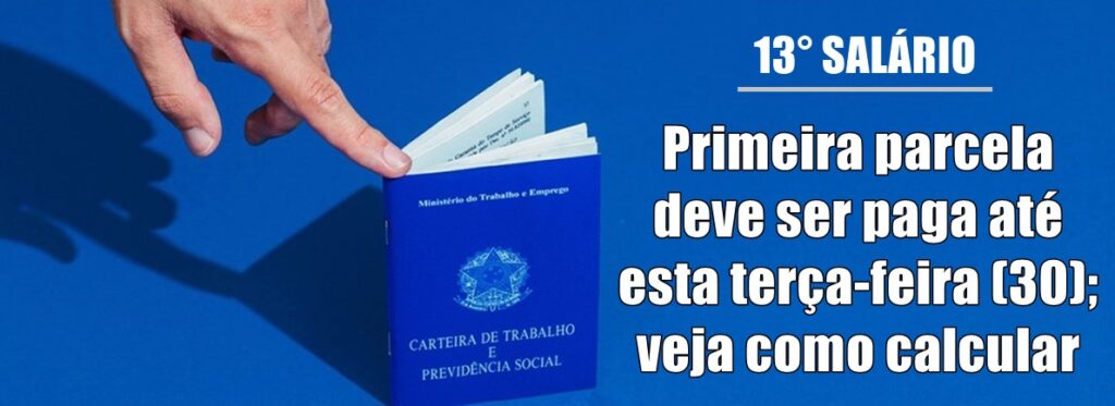 Neta terça-feira (30) acaba o prazo para o pagamento da primeira parcela do 13º salário para os trabalhadores brasileiros com carteira assinada. Pela norma, a partir de quinze dias de serviço, o trabalhador já passa a ter direito. Os aposentados e pensionistas do INSS também recebem o benefício.