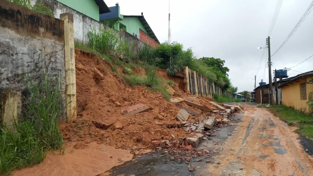 Após forte chuva na madrugada desta quarta-feira (24), o muro caiu mais uma vez. Nas imagens é possível notar que o muro de contenção não suportou o grande volume de água é caiu.