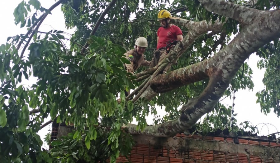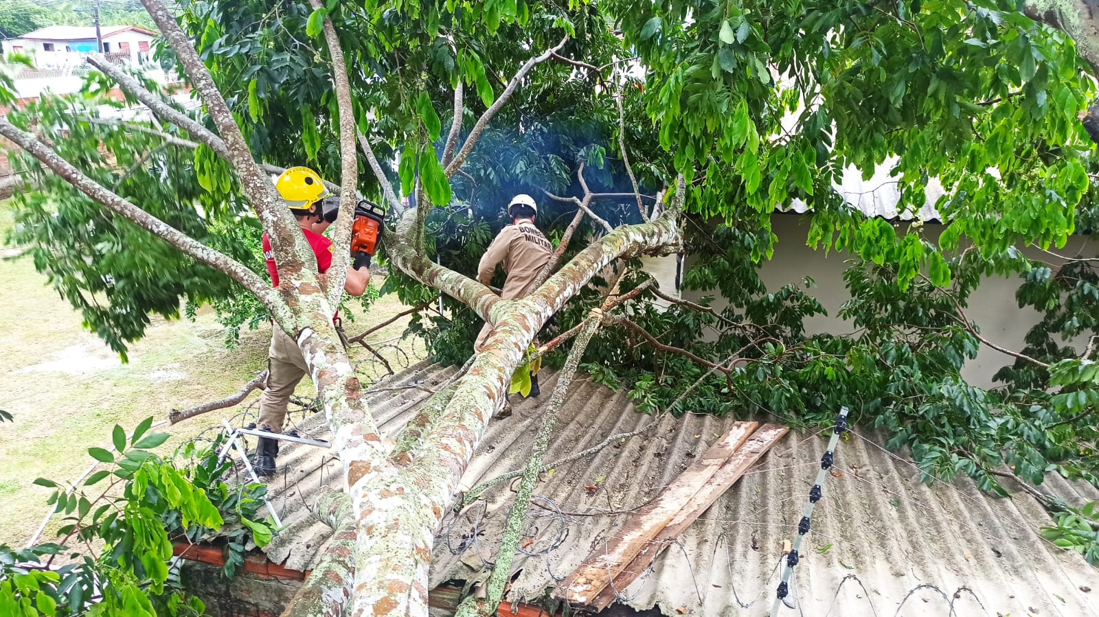 Uma equipe do Corpo de Bombeiros Militar foi acionada para realizar os trabalhos de remoção da árvore. Apesar dos danos causados, não houve vítimas.