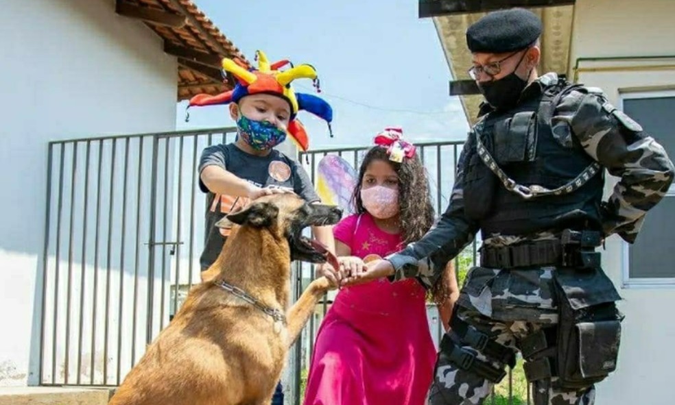 O projeto é do sargento Queiroz e coordenado pela aspirante Patrícia Costa. Ela explica que a cinoterapia é a terapia feita com cães e auxilia para que a criança possa desenvolver o sistema imunológico.