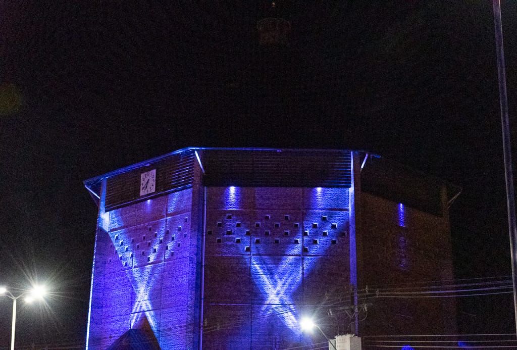 Nesta quinta, 5, houve a tradicional troca de luzes da Catedral Nossa Senhora da Glória para o Azul da campanha.