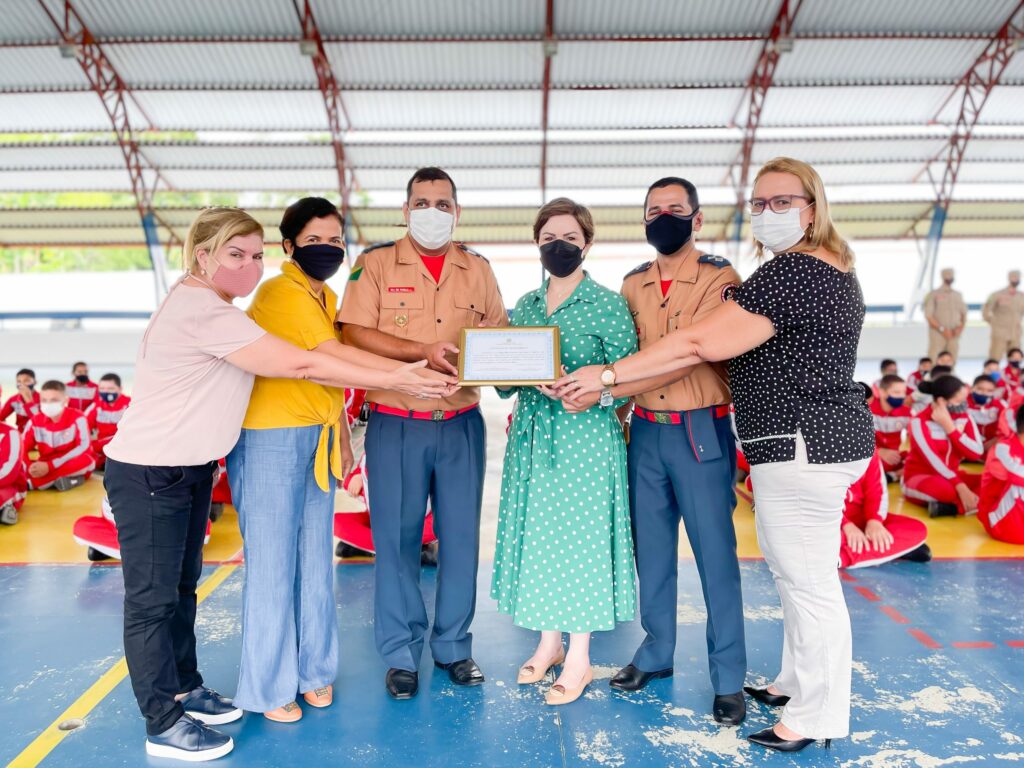 “Imaginem o tamanho de nossa satisfação. Nosso Colégio foi criado em 2019, e agora, em 2021, já estamos fazendo uma celebração que retrata toda uma estrutura curricular-pedagógica bem alinhada, que define nossa identidade, e que começa a escrever uma história dentro daquilo que sonhamos quando imaginávamos a criação deste Colégio Militar. Isso é fruto de muito trabalho de toda nossa equipe, com apoio da SEE, que acreditou que seria possível termos esse certificado e correu atrás para conseguir”, destacou o gestor da unidade escolar, major Rômulo Barros.