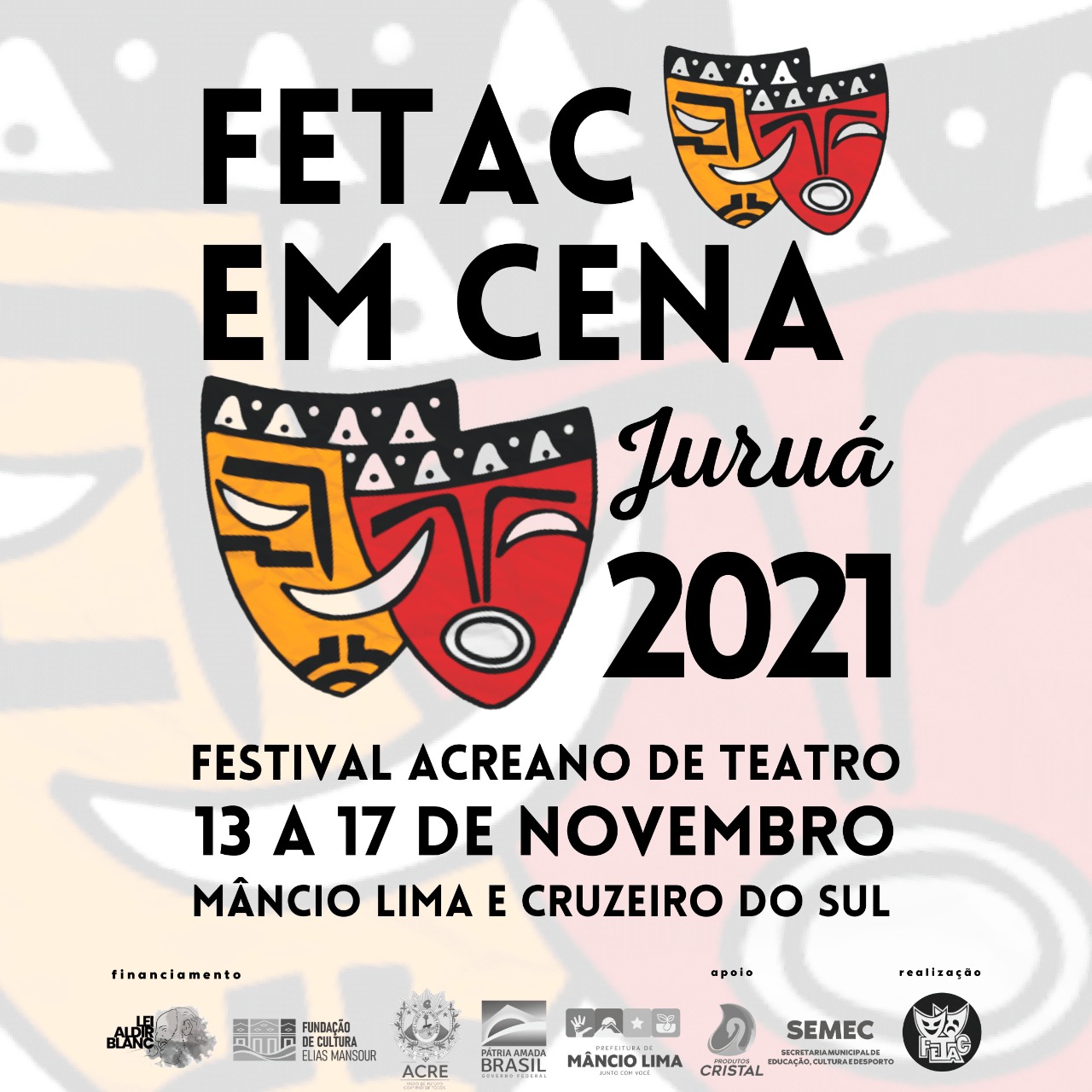O Fetac em Cena Juruá é um projeto é financiado pela Lei Aldir Blanc do Governo Federal, por meio da Fundação Elias Mansour, pelo Governo do Estado do Acre e pela Prefeitura de Mâncio Lima, com o apoio da Secretaria Municipal de Educação, Cultura e Desporto e da Produtos Cristal.