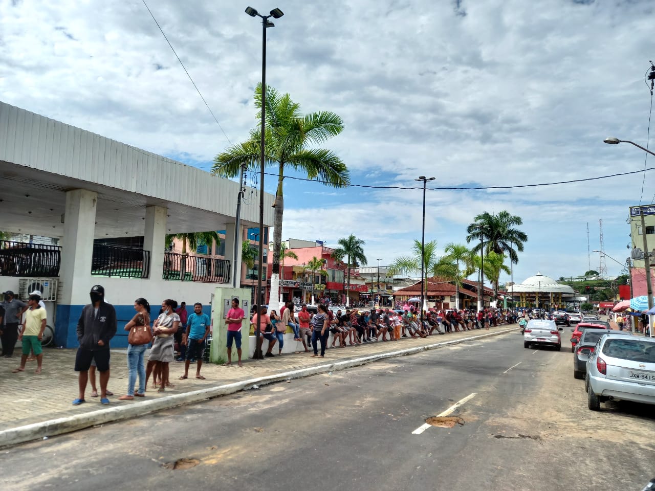 O centro comercial de Cruzeiro do Sul, interior do Acre, iniciou na manhã desta quarta-feira (17), com um grande fluxo de pessoas em filas bancárias e das lotéricas. Filas quilométricas foram registradas nas portas das agências.