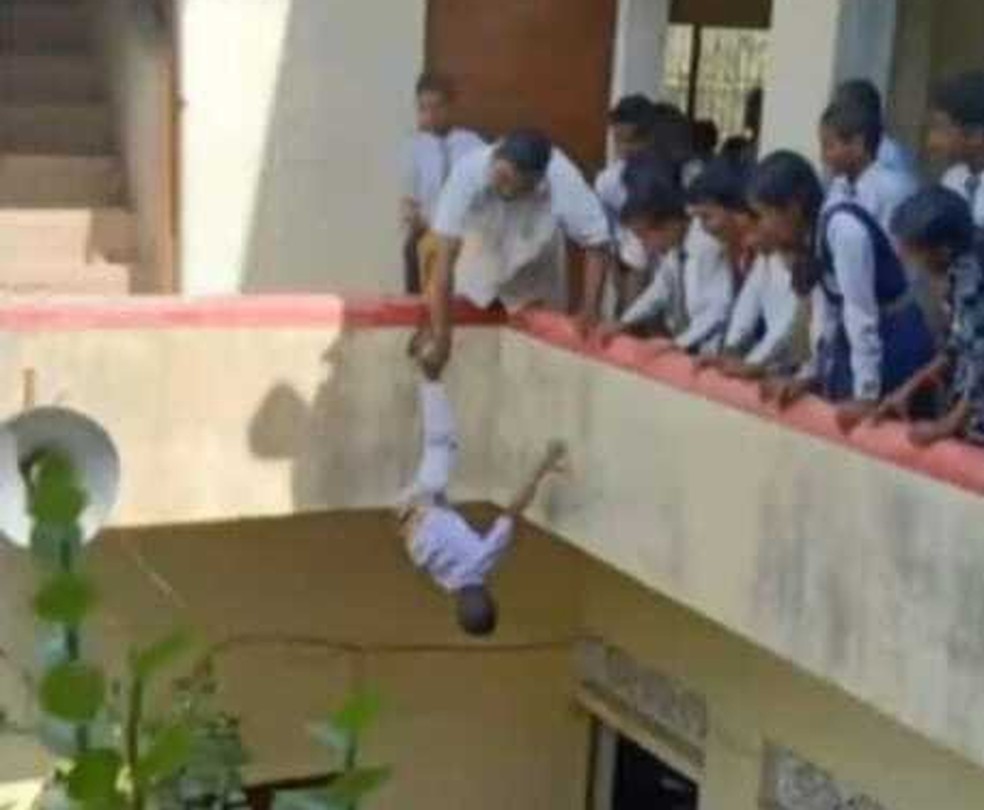 O diretor de uma escola particular de ensino fundamental em Mirzapur, na Índia, foi preso após pendurar um aluno de cabeça para baixo da sacada do primeiro andar do prédio, na quinta-feira (28).