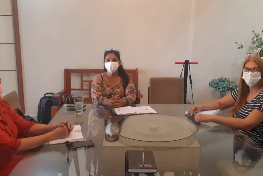 A presidente do IMC, Joice Nobre, acompanhada da chefe de departamento, Nazaré Macedo, realizou reuniões com a coordenadora da Secretaria Estadual de Assistência Social e Direitos Humanos e Políticas para mulheres em Cruzeiro do Sul, Milca Oliveira dos Santos; com a presidente da Articulação Juruaense de Mulheres (AJM), Rosalina Oliveira de Souza, e as integrantes da diretoria que participaram por videochamada e ainda com a coordenadora municipal de políticas públicas para mulheres, Sergiane Souza da Silva.