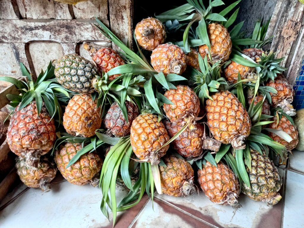 Segundo informou a vendedora de frutas e verduras, Ivone Ferreira de Lemos, a safra foi muito alta, mas em compensação as vendas foram baixas. “Este ano a colheita de abacaxi foi muito grande, mas as vendas foram poucas. Eu tenho comprado de 200 abacaxis e mesmo assim, sobra e alguns estragam, por falta de vendas. Comparado ao ano de 2020, este de 2021 as vendas foram muito fracas”, disse.