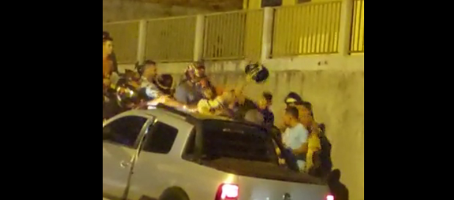 Segundo pessoas que estavam no local, os “brigões” desceram até a rua e lá começaram a trocar socos e pontapés.