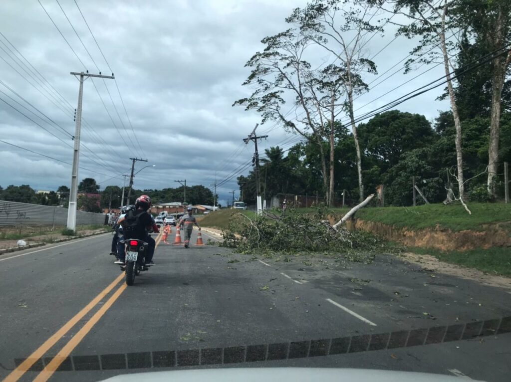 Uma árvore que ficava localizada próximo a Secretaria Estadual de Educação, caiu na pista com o forte vento. Apesar do perigo ninguém foi atingido.
