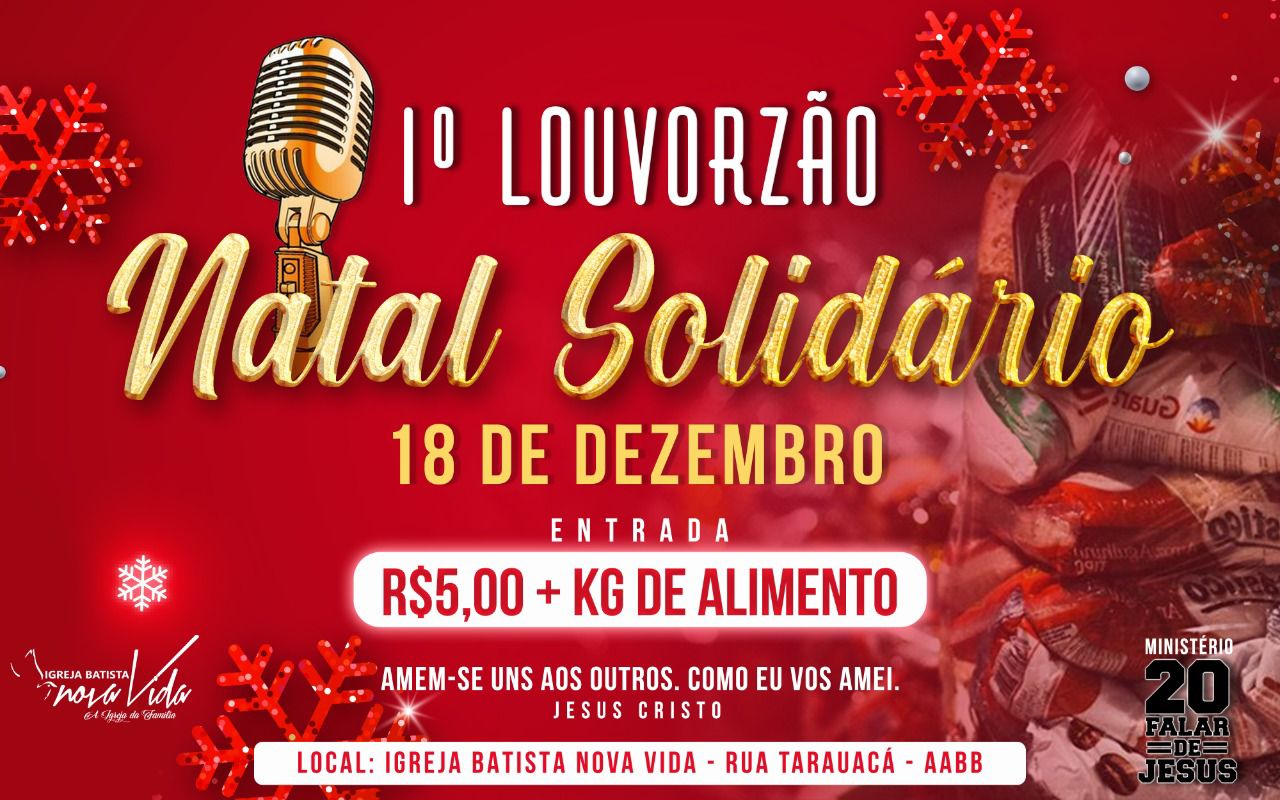O ministério 20 FALAR DE JESUS, da Igreja Batista Nova Vida (IBNV), localizada na rua Tarauacá, próximo a AABB, em Cruzeiro do Sul, está organizando o 1° Louvorzão Natal Solidário da IBNV. O evento acontecerá no dia 18 de dezembro, às 19h no templo sede da igreja.