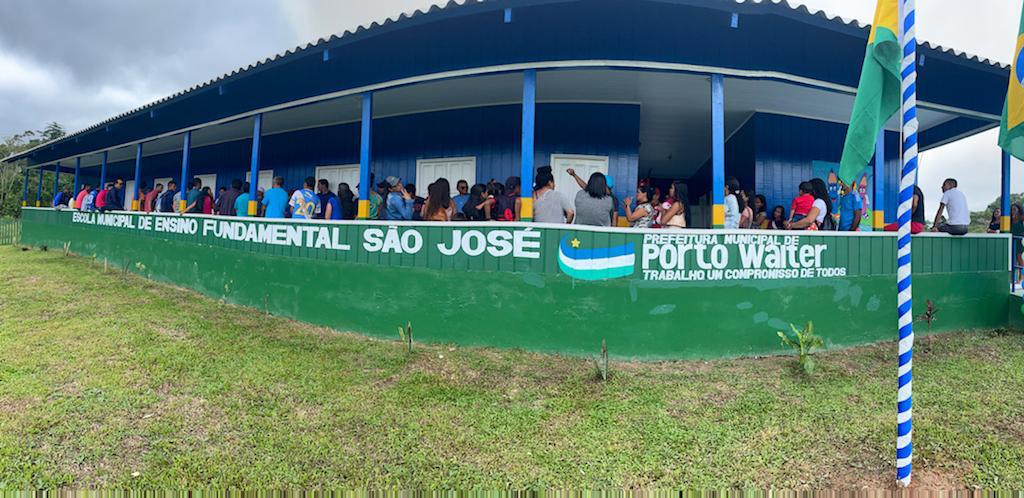 As obras de construção, reforma e ampliação para atender 327 alunos divididos em EJA, Ensino Fundamental e ASAS, das comunidades Boa Vista e Mororó, no Rio Cruzeiro do Vale, na zona rural de Porto Walter, foram entregues neste Sábado (20), pelo Prefeito César Andrade.