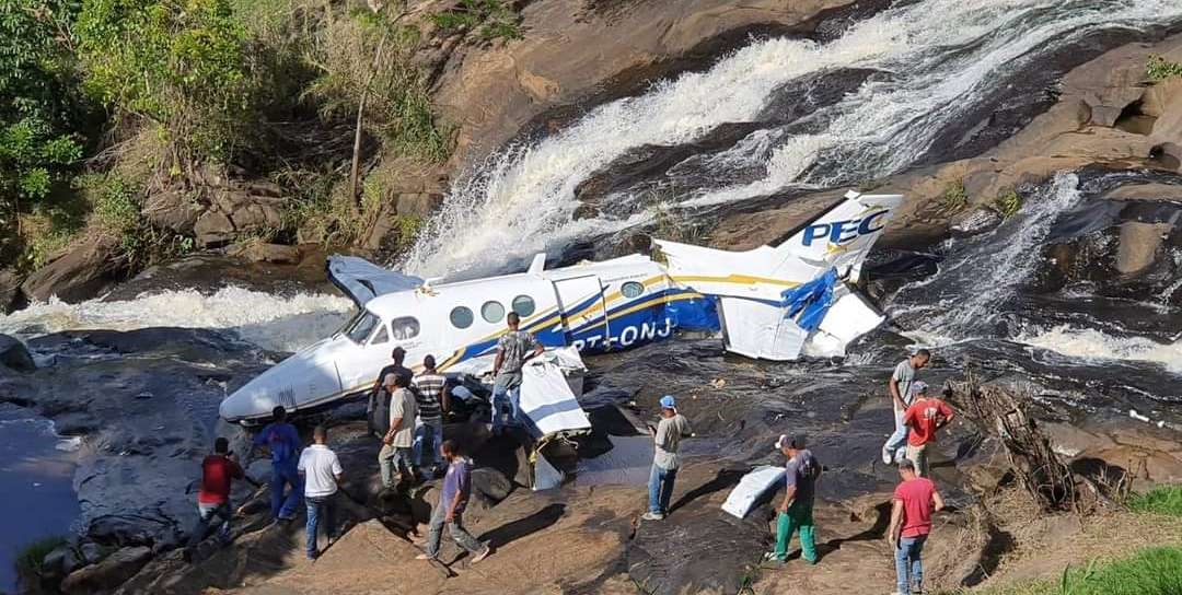 - Avião bimotor caiu perto de uma cachoeira por volta de 15h30;