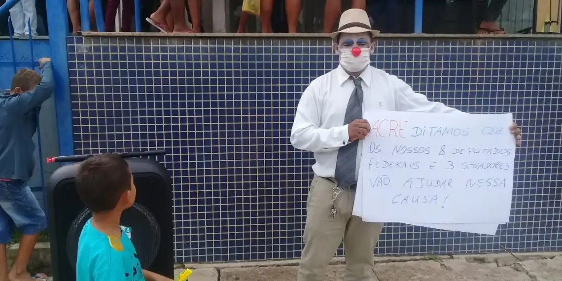 Na manhã desta segunda-feira (29), um morador do município de Cruzeiro do Sul, interior do Acre, se vestiu de palhaço e foi para a frente do Instituto Nacional do Seguro Social – INSS, pedir melhorias no atendimento da agência de Cruzeiro do Sul.