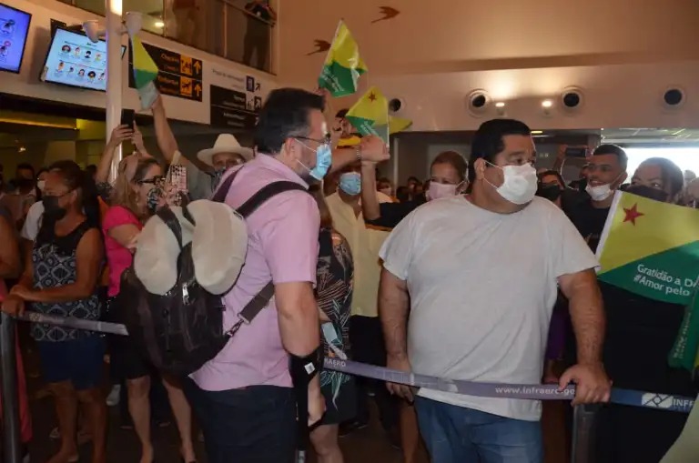 Logo que desembarcou o deputado cumprimentou os familiares e amigos. Durante conversa com jornalistas que estavam no local, foi questionado a possível candidatura ao Senado, já que o nome deputado federal é o melhor colocado nas pesquisas entre os nomes da situação e entre todos os possíveis candidatos lidera a preferência dos eleitores já a frente do petista Jorge Viana, que ainda não decidiu se disputará o senado ou o governo.